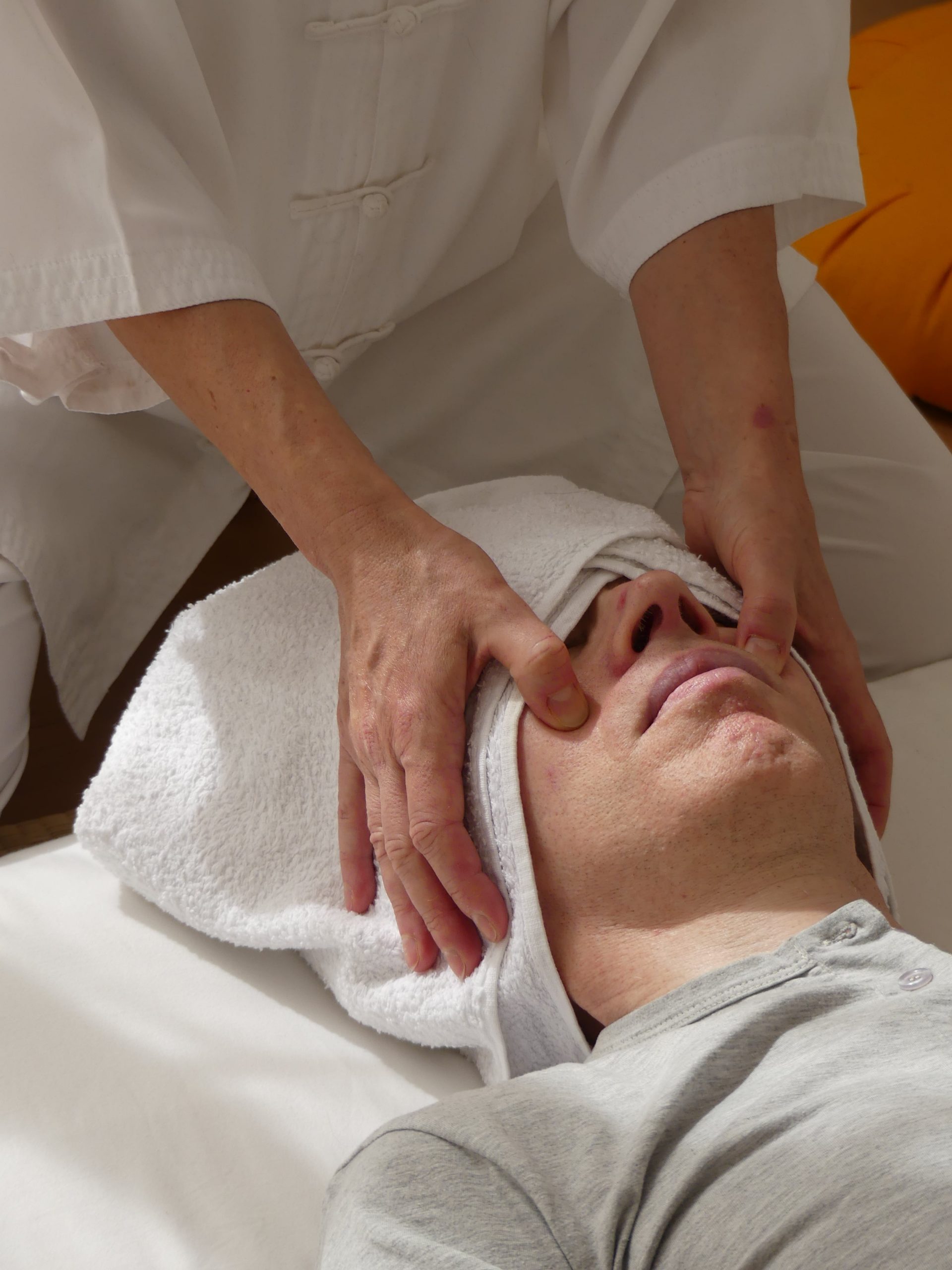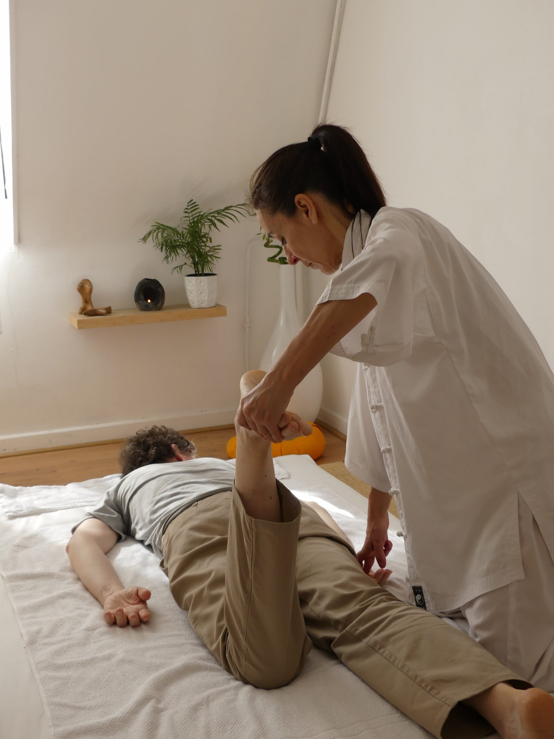 Alors, commence le traitement manuel avec implication de la personne par un travail simultané sur la respiration. L’ensemble du corps est abordé.